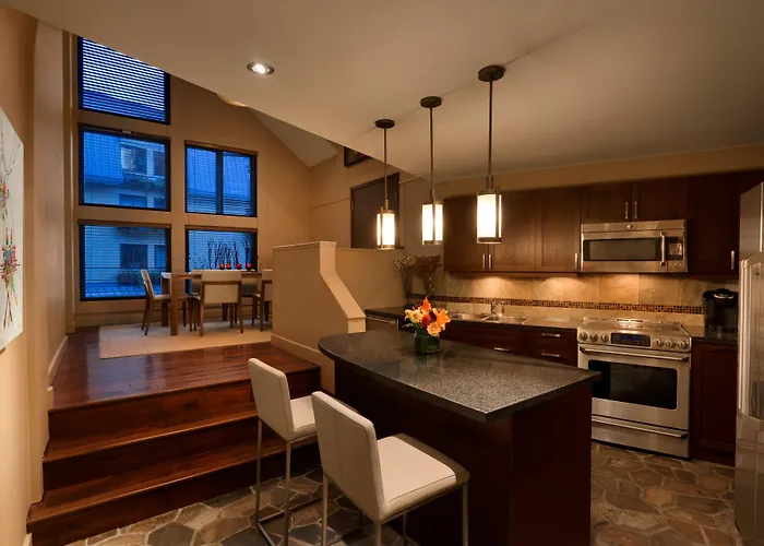 Hotel ten położony jest w dzielnicy Whistler Village około 1 km od centrum Whistler. Atrakcje w pobliżu obejmują Whistler Olympic Plaza, a także Whistler Bungee.